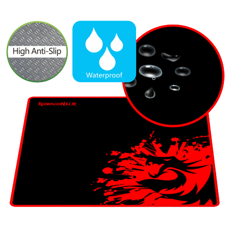 Large Redragon XL Mouse Pad for Gaming, Waterproof, Silk-processed cloth surface ensures smooth, ultra-precise mouse movements. Underside is made of anti-slip natural processed foam rubber offering great flexibility, adjusting to different surfaces. Stitched Edges prevent damage and curling