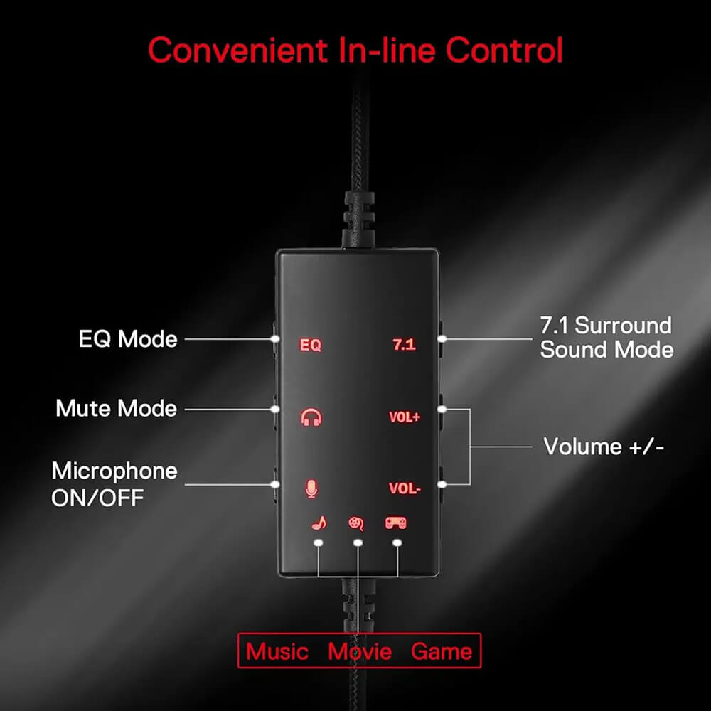Experience immersive gaming with the Redragon H376 Aurora USB Wired Gaming Headset 7.1 Surround Sound Over-Ear Headphone w/40 MM Audio Drivers, Advanced EQ Mode, 240g Lightweight, designed for ultimate comfort and superior sound quality. Equipped with 7.1 Surround Sound and 40mm audio drivers, this headset delivers crystal-clear audio, enhancing every in-game detail. The Advanced EQ Mode allows for precise sound customization, ensuring optimal performance for different game genres. Weighing just 240g, the lightweight build offers extended comfort for marathon gaming sessions. The adjustable over-ear design with soft ear cushions ensures a snug fit while minimizing external noise. Whether you're battling in competitive games or enjoying cinematic experiences, the Redragon H376 Aurora delivers the perfect blend of audio precision and comfort.