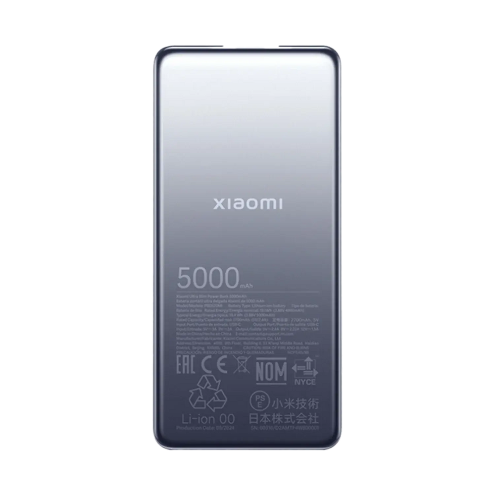 Xiaomi Ultra Slim Power Bank 5000mAh combines style, portability, and power. This slim and lightweight device easily fits into your pockets or bags, making it ideal for travel and daily use. The device is equipped with a high-density lithium polymer battery for reliable and efficient charging of smartphones, tablets, and other devices. The power bank features advanced safety measures to protect against overcharging and short circuits. With its fast-charging capabilities and premium build quality, Xiaomi's Ultra Slim Power Bank 5000mAh is always ready for any situation.